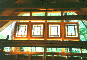 The 4 little antique windows will provide some light to that end of the cabin. Here are the first two being installed