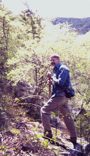 Bob scans the countryside looking for wildlowers and poison ivy,